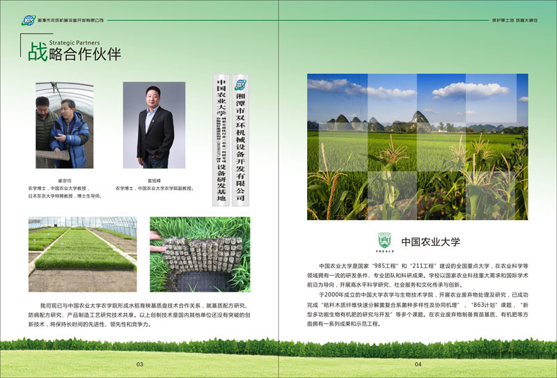 于2000年成立的中國大學農(nóng)學與生物技術(shù)學院,開展農(nóng)業(yè)廢棄物處理及研究,已成功完成“秸稈木質(zhì)纖維快速分解菌復合系菌種多樣性及協(xié)同機理”,“863計劃”課題,“新型多功能生物有機肥的研究與開發(fā)”等多個課題。在農(nóng)業(yè)廢棄物制備育苗基質(zhì)、有機肥等方面擁有一系列成果和示范工程。我司現(xiàn)已與中國農(nóng)業(yè)大學農(nóng)學院形成水稻育秧基質(zhì)盤技術(shù)合作關(guān)系,就基質(zhì)配方研究、防病配方研究、產(chǎn)品制造工藝研究技術(shù)共享。