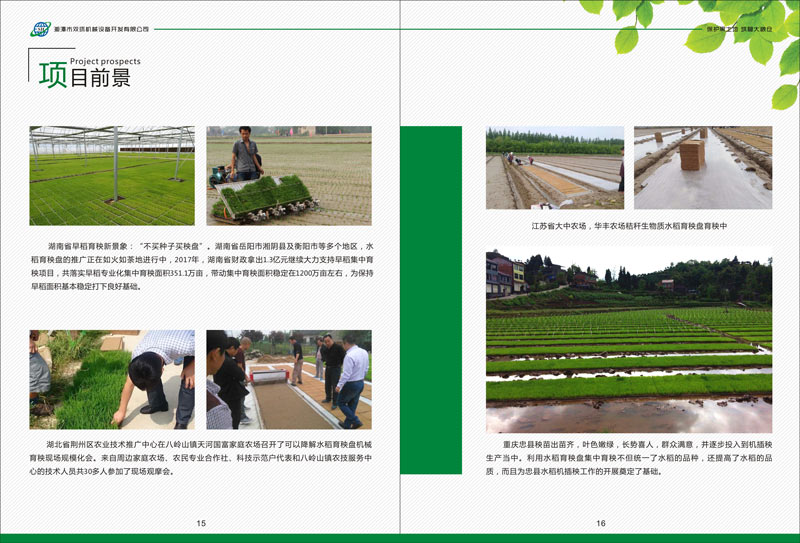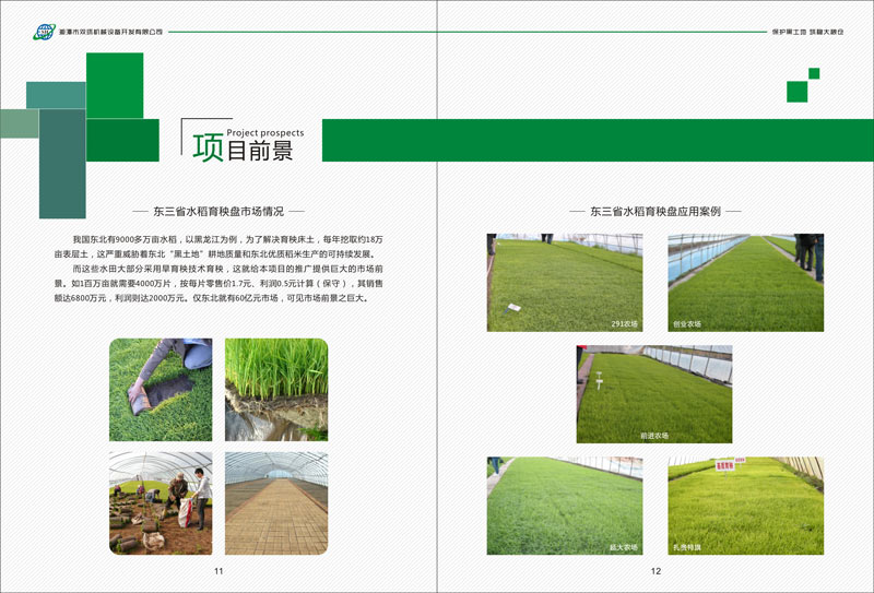 而這些水田大部分采用旱育秧技術(shù)育秧,這就給本項目的推廣提供巨大的市場前景。如1百萬畝就需要4000萬片,按每片零售價1.7元、利潤0.5元計算(保守),其銷售額達6800萬元,利潤則達2000萬元。僅東北就有60億元市場,可見市場前景之巨大。